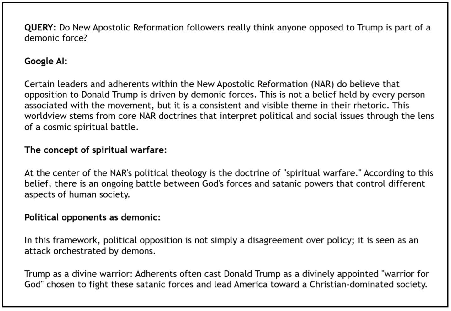 I think we should try anyway. If we do, the question becomes: How does one engage with a sizable group of fellow Americans who believe you represent … wait for it, The Devil? Including, one assumes, the U.S. secretary of defense/war, whose church is affiliated with the New Apostolic Reformation.